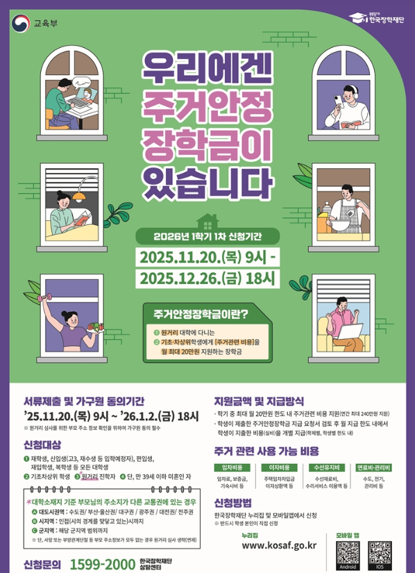 특히 본가에서 멀리 떨어진 지역에 위치한 대학에 다닐 경우, 월세·관리비·공과금 등 주거비가 상당히 큰 부담이 되는데요.